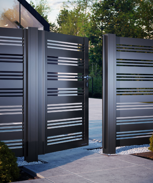 Stilvolle Zugangslösungen für Fußgänger – als harmonische Ergänzung zu Ihrem Zaunsystem und ideal abgestimmt auf Design und Funktion Ihrer Gesamtanlage.